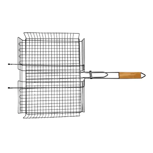 Благодаря продуманной форме, решетка позволяет надежно удерживать мясо, рыбу или овощи во время переворачивания, уменьшая риск их выпадения. Подходит для использования на пикниках, даче или во время отдыха на природе как практичный аксессуар для приготовления на угле.