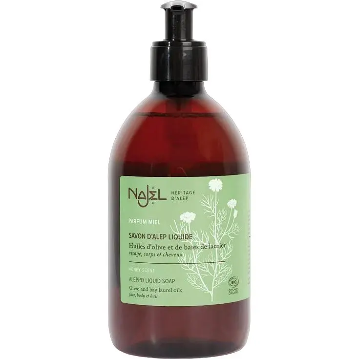 Aleppo Liquid Soap производится во Франции с использованием органического оливкового масла первого отжима и лаврового масла в лаборатории во Франции. Жидкое алеппское мыло было изобретено в 1964 году дедушкой г-на Наджара, нынешнего генерального директора, и получено в результате горячего омыления этих двух растительных масел. Оно изготовлено по старинному рецепту из тех же ингредиентов, что и настоящее твердое алеппское мыло.