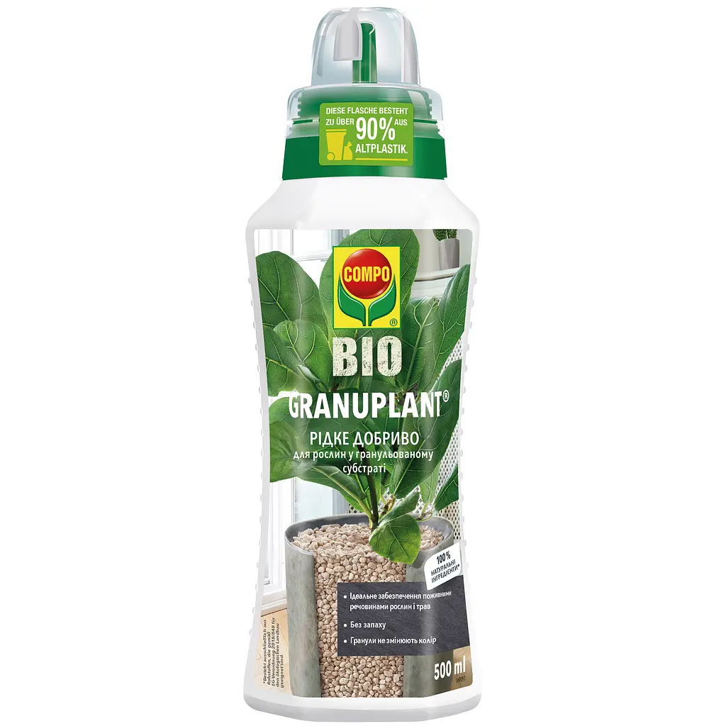 Жидкое удобрение Compo Bio Granuplant для растений в гранулированном субстрате - это полноценное жидкое удобрение для растений и трав в доме и на балконе, созданное на основе 100% натуральных компонентов. Оно не только поддерживает здоровье ваших растений, но и гарантирует безопасную среду в вашем доме или саду. Обеспечивает сбалансированное питание и способствует активному, здоровому росту корневой системы. Удобрение идеально подходит для растений, выращиваемых в гранулированных субстратах, в частности в Compo Bio Granuplant.