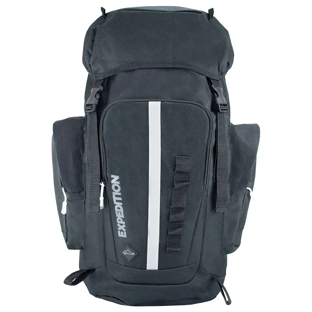 Semi Line 35 Black (A3039-1) - это современный туристический рюкзак с анатомической дышащей спинкой и вместительным водостойким основным отделом с закрывающимся на фастексах клапаном, позволяющим закрепить под ним дополнительное оборудование такое как палатка или каремат. Фасадный карман подойдет для хранения аптечки и других вещей первой необходимости, а боковые карманы на молнии поместят бутылку с водой или термос объемом до 0.6 л. Устройство рюкзака позволяет разместить в нем вещи длиной до 60 см. С помощью нагрудной стяжки и бедренного ремня рюкзак надежно фиксируется на спине, а вес распределяется более равномерно.