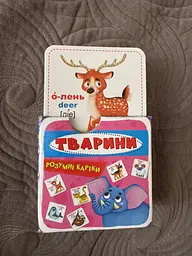 Навчальні картки з тваринами з англійським перекладом та транскрипцією. Багато карток з тваринами, мають гарні кольори та коробку в комплекті.