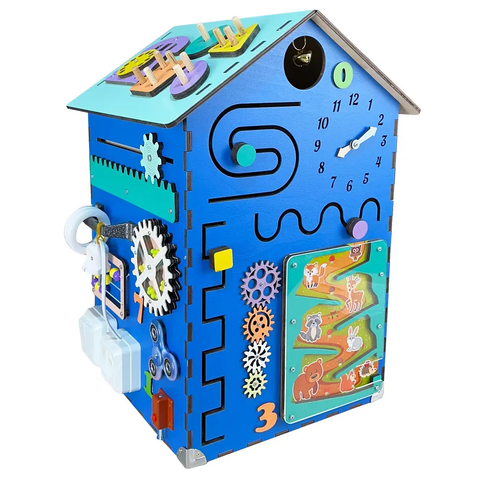 Во время взаимодействия с элементами домика активно развивается мелкая моторика, а вместе с ней - память, внимание, мышление, координация движений, воображение и речевые способности. Ведь на пальцах и ладонях расположены нервные окончания, напрямую связанные с центрами головного мозга.