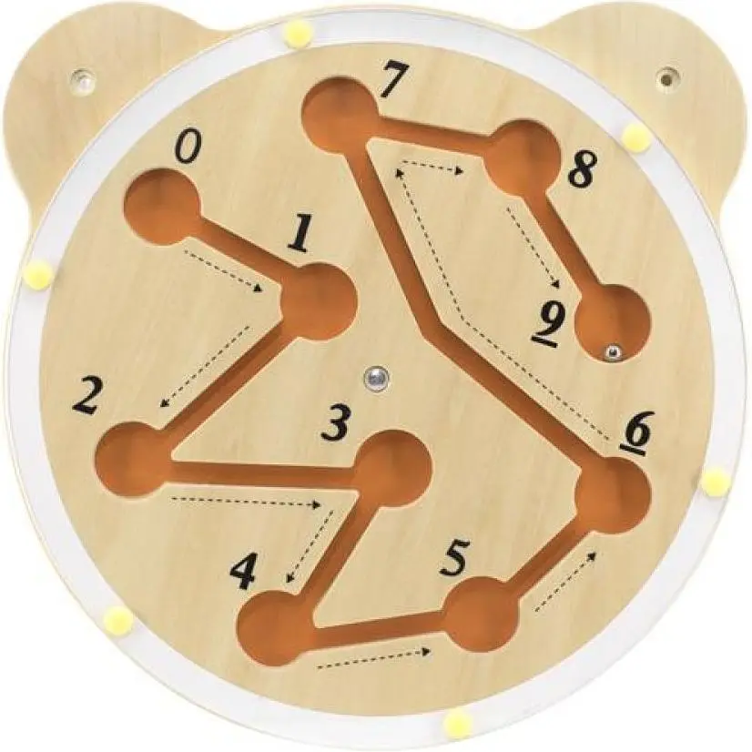 Настенная деревянная игрушка познакомит детей с цифрами и их порядком. Бизиборд с лабиринтом для шарика увлечет детей игрой, во время которой укрепляются мышцы рук и координация.