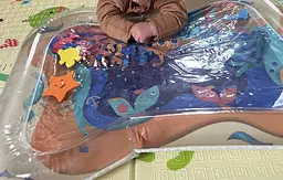 Надувной водный коврик - это тренажерный зал для малыша! Свободная игра на коврике развивает моторику и координацию движений. Ребенок тренирует мышцы ног, рук, живота и спины, а также улучшает навыки равновесия.