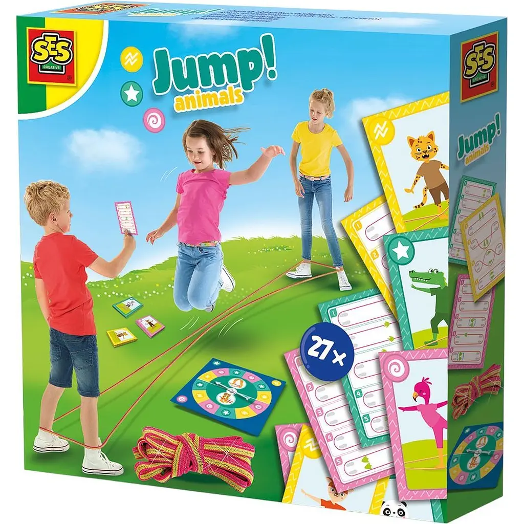 Развивающая игра с резинкой для прыжков SES Creative Прыгающая команда - это активная игра для детей, которая сочетает движение, веселье и командное взаимодействие. Благодаря блестящей резинке для прыжков, карточкам с заданиями и вращающемуся диску дети смогут выполнять различные прыжковые трюки, соревноваться между собой и развивать физические навыки. Хотите узнать дополнительные идеи для игры? Спросите маму - она точно помнит!