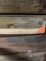 На перший погляд—гарне топорище,з деревини твердої породи,без сучків,відполіроване,руківʼя на краю потовщене для попередження зісковзання рук