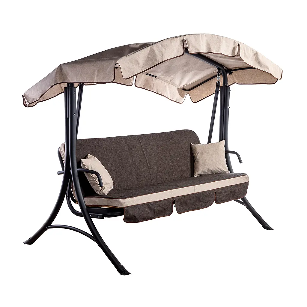 Садовая диван-качалка округлой крышей и с длиной сиденья 170 см.