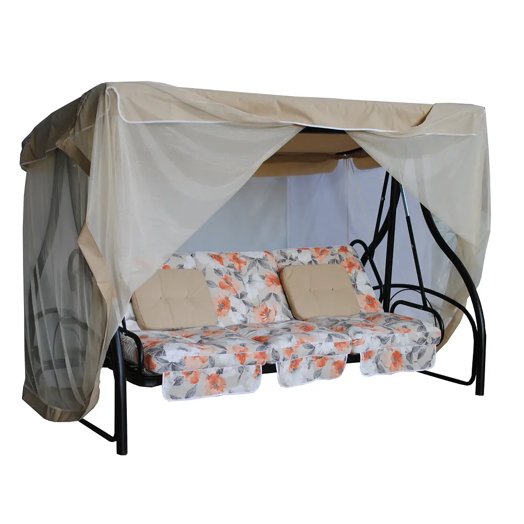 Качалка комплектуется: матрасом, тканевым тентом, подушками - 2 шт., москитной сеткой.