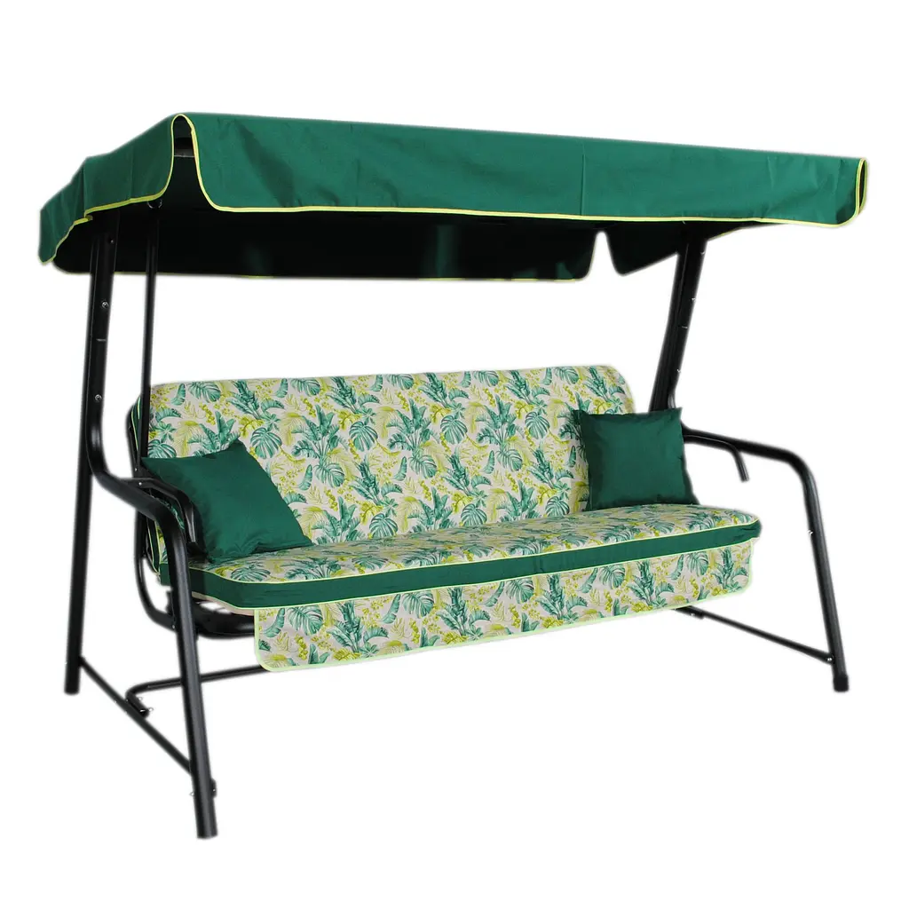 Угол наклона тента (наклон вверх-вниз) регулируется боковыми фиксаторами на крыше. Качели комплектуются: матрасом, тканевым тентом и подушками -2 шт. Обивка матраса, тент и подушки изготовлены из ткани тексилка. Эта ткань специально разработана для уличной мебели и имеет следующие преимущества: