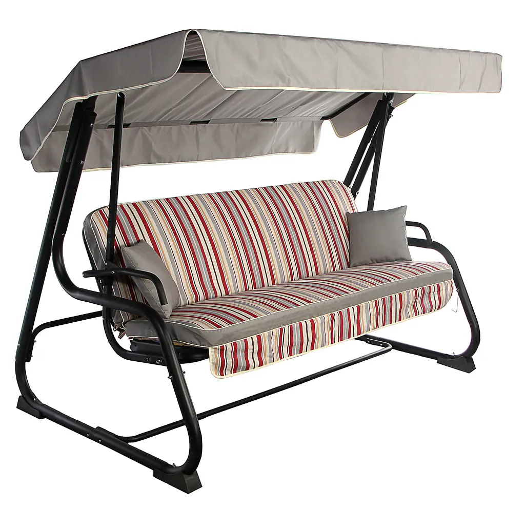Угол наклона тента (наклон вверх-вниз) регулируется боковыми фиксаторами на крыше. Качели комплектуются: матрасом, тканевым тентом и подушками - 2 шт.