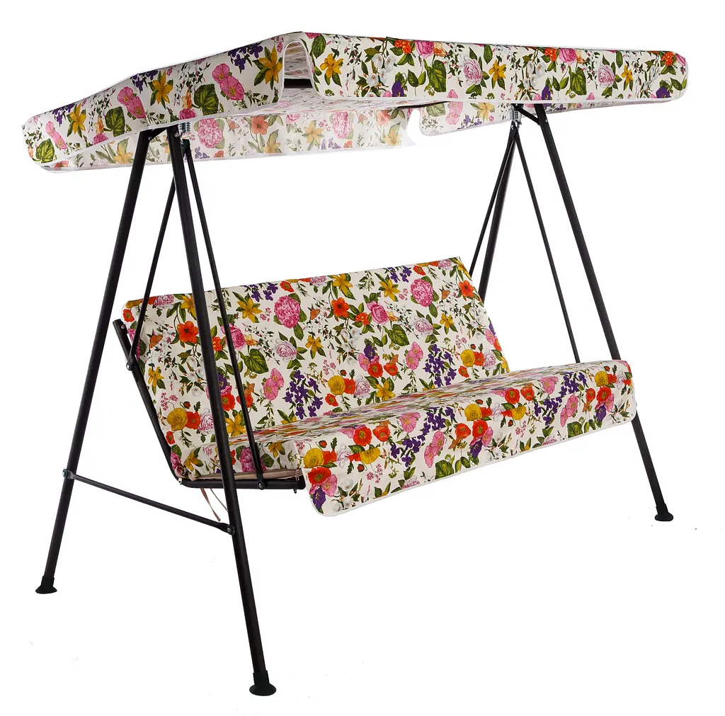 Качели комплектуются: матрасом, тентом. Матрас и тент изготовлен из ткани лонета - 50% хлопок, 50% - полиэстер. Наполнитель – симтекс.
