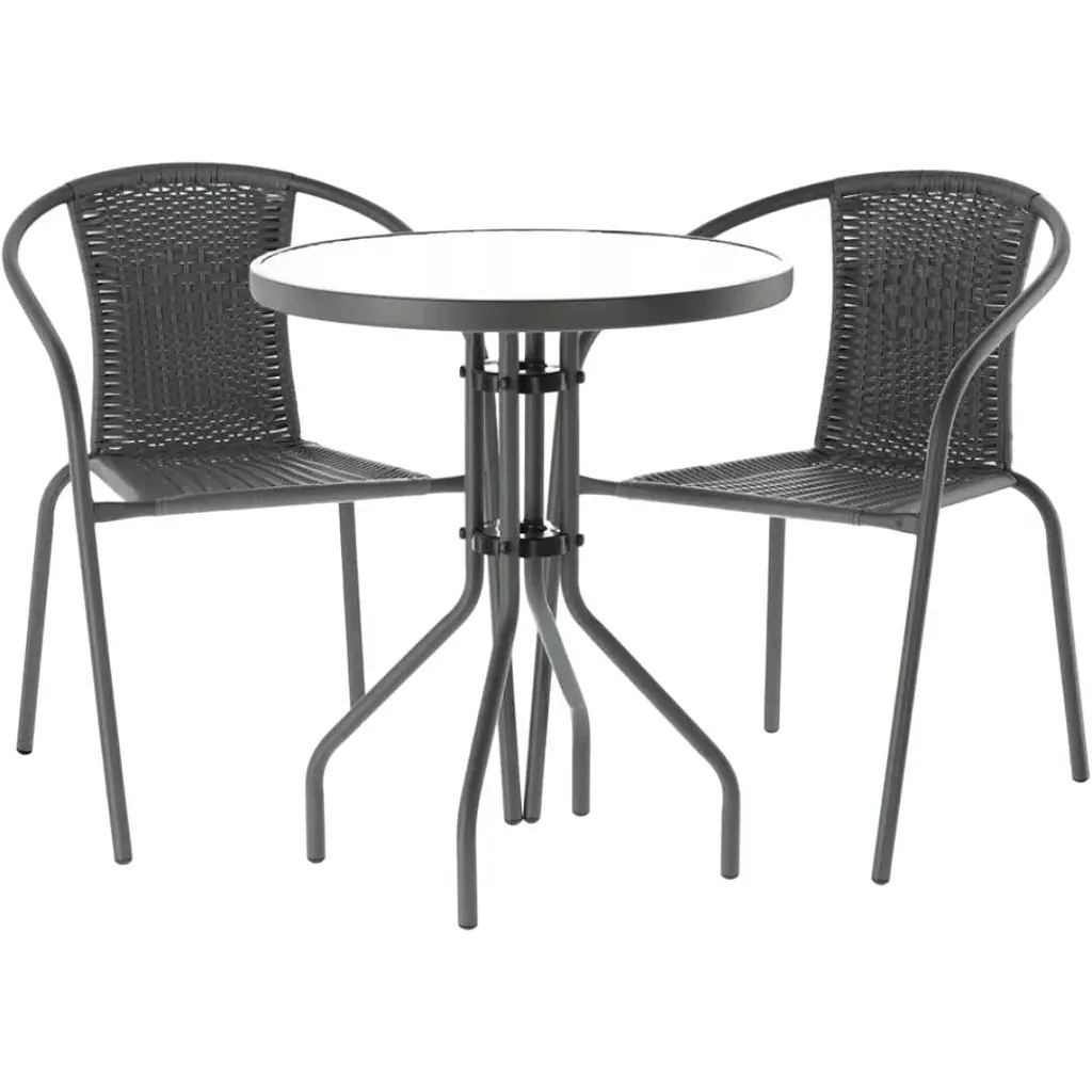С набором BISTRO каждый момент отдыха становится настоящим наслаждением, где вы можете выпить чашку ароматного кофе или насладиться тишиной природы. Круглый стол и два стула станут не только местом для отдыха, но и изысканным дополнением вашего внешнего пространства, придав ему стиль и уют.