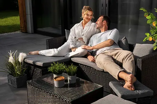 Уникальность роскошного дивана садовой мебели Di Volio Bologna заключается в его функциональном сиденье. Одно из крайних мест поднимается, и его можно легко отрегулировать под нужным углом. Эта функция позволяет пользователю настроить продукт под себя и наслаждаться отдыхом с полным комфортом.