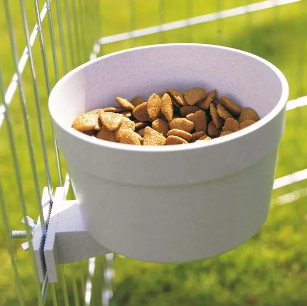 Очень удобная съемная кормушка. Идеально подходит для собак, котов, птиц, хорьков, кроликов, и других животных. Кормушка для животных изготовлена из качественного, полированного пластика. Миска легко снимается, чтобы налить воду или насыпать корм. Крепится на прутья клетки. Подходит для всех видов металлических клеток.