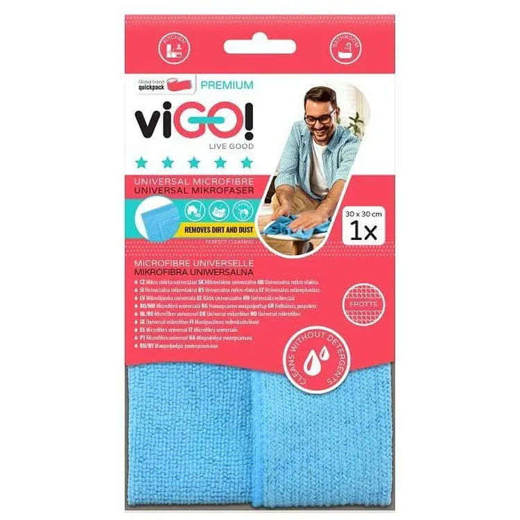 Салфетка из микрофибры универсальная viGO! Premium предназначена для мытья поверхностей и чистки. Универсальный инструмент для уборки, благодаря эффективности, долговечности и способности удалять грязь без использования химических средств.