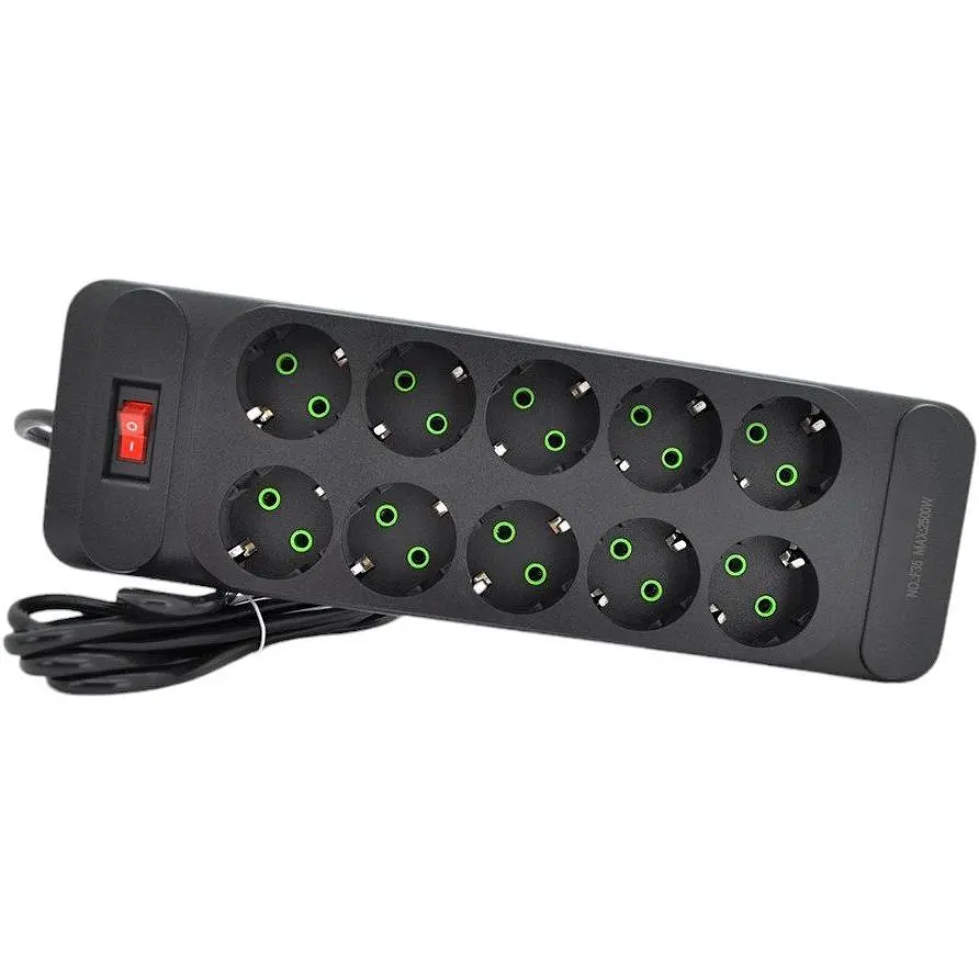 Сетевой фильтр удлинитель Voltronic F-35, кнопка включения с индикатором, 10 розеток EU, 2 м, 3х0,75мм, 2500W, Black. Сетевой фильтр F-35 - это и защита от всяких электрических проблем, и поставщик энергии для твоих устройств. С защитой от замыканий и скачков напряжения, он подарит полное спокойствие своему обладателю.