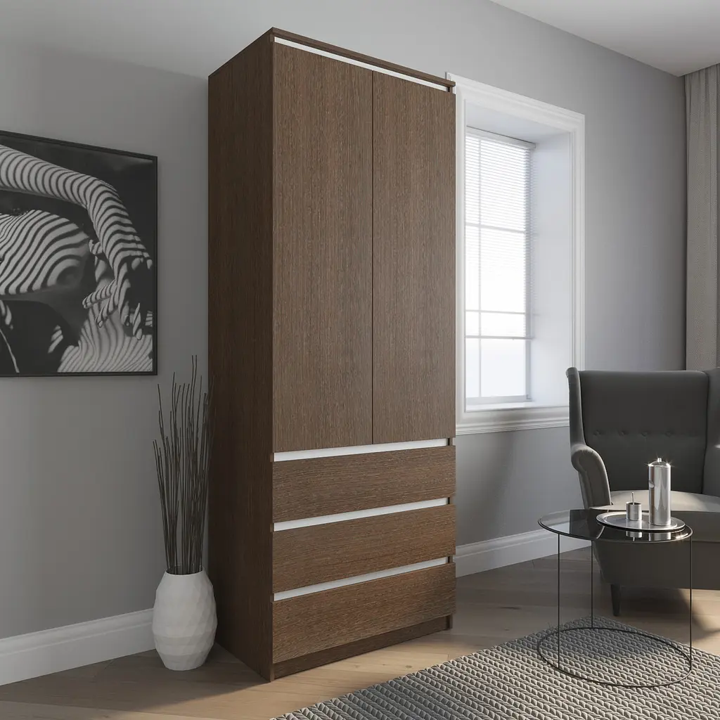 Шкаф для одежды Vays R-9 - функциональное решение для спальни, гостиной или прихожей. Оснащен 3 вместительными ящиками и штангой для вешалок, идеально подходит для хранения одежды и аксессуаров. Минималистичный дизайн без ручек придает современность, а прочная конструкция из ЛДСП гарантирует долговечность. Компактные размеры позволяют разместить шкаф даже в небольшом помещении.