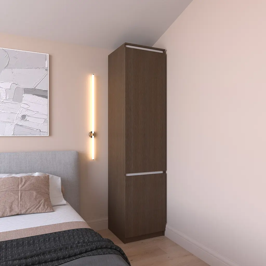 Шкаф пенал Vays R-22 - функциональное решение для организации хранения в спальне, прихожей или гардеробной. Благодаря компактным габаритам 50×50×211 см, модель идеально подходит для небольших помещений, обеспечивая при этом достаточно места для одежды, белья и других вещей. Внутри предусмотрены практичные полки для упорядоченного хранения. Стильный фасад без ручек придает изделию современный вид и гармонично вписывается в минималистичный интерьер. Изготовленный из прочного ЛДСП, шкаф отличается долговечностью, легкостью в уходе и надежной конструкцией. Идеальный выбор для ценителей лаконичного дизайна и функциональности.