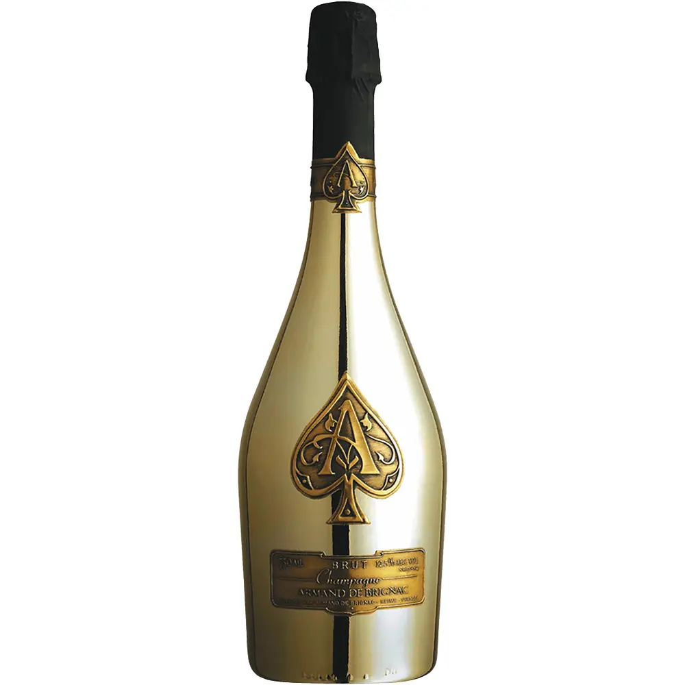 Шампанское Armand de Brignac Brut Gold - первый выпуск Champagne Armand de Brignac является самым культовым кюве в ассортименте, это трио винтажей из самых прославленных терруаров региона, в результате чего шампанское выражает яркий и свежий фруктовый характер с мягкой текстурой. Вино золотисто-желтого цвета, с нежным перляжем. Имеет богатый цветочный аромат с нотами персика, абрикоса и красных фруктов, за которыми следуют цветы апельсина и оттенок бриоши. Вкус богат экзотическими фруктами, вишней и оттенками лимона, ванили и меда.