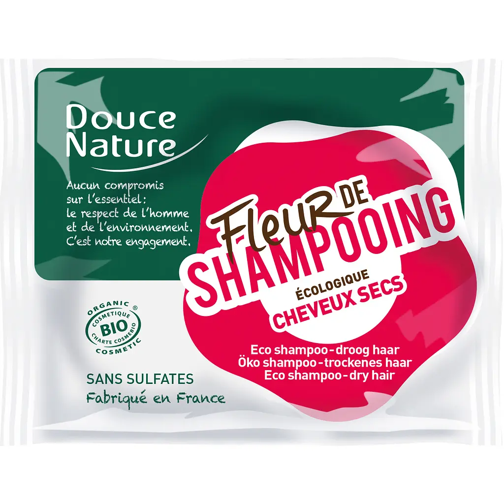 Шампунь для сухих волос Douce Nature Fleur de Shampoo - первый органический сертифицированный шампунь в твердой форме с особым внешним видом - напоминает кусочек мыла.
