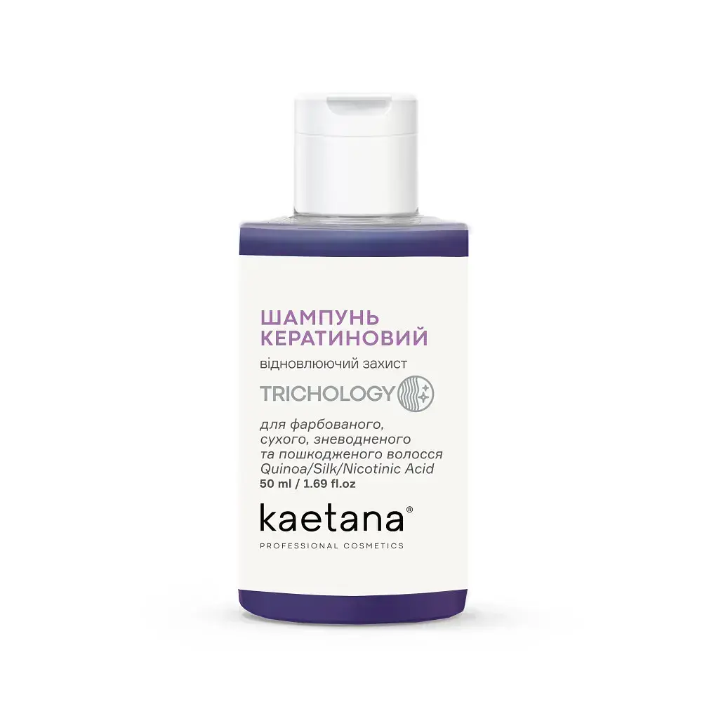 Шампунь Кератиновый для окрашенных и поврежденных волос - восстановительный шампунь с кератином, гиалуроновой кислотой, протеинами киноа и шелка для деликатной очистки, сохранения цвета и глубокого увлажнения.