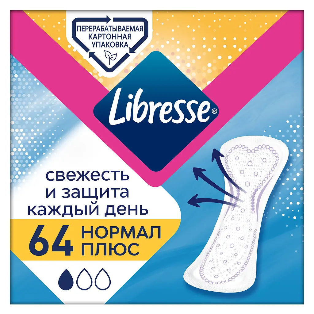 Ежедневные прокладки Libresse Нормал Плюс обеспечивают свежесть и защиту на весь день.