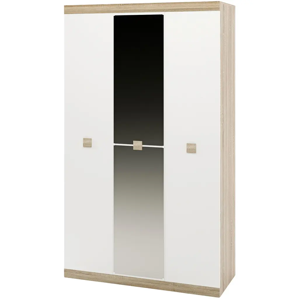 Купить недорого шкаф Соната-1200 с зеркалом Эверест можно в различных цветах, включая Венге темный + Дуб крафт золотой и Венге темный + Белый. Шкаф выполнен из экологически чистого ЛДСП (уровень эмиссии Е1) швейцарской компании Kronospan, что делает его безопасным для использования в любых помещениях.