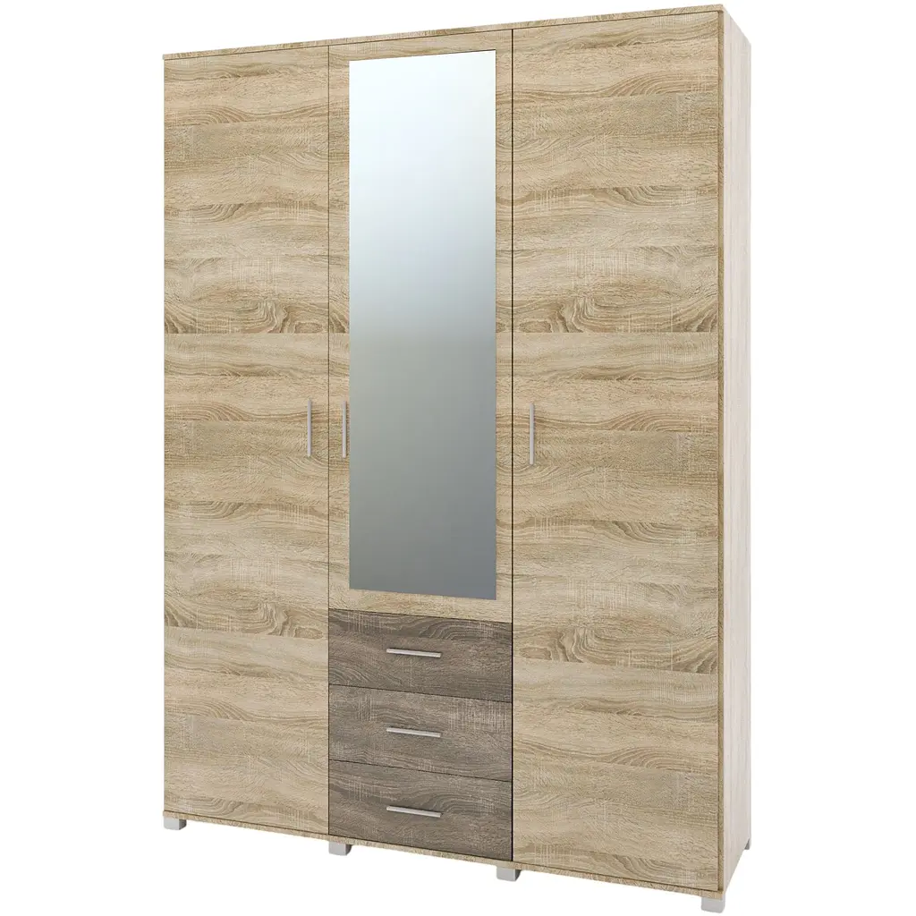 Большой шкаф Бриз ШП-5 из коллекции Бриз является бюджетной, практичной мебелью от украинской торговой марки Эверест. Одновременно сочетает в себе современный сдержанный дизайн и функциональность. Конструкция шкафа состоит из трех отделов, каждый из них оснащен отдельной дверью. Боковые отделы имеют одинаковые штанги для вешалок и полки. Наполнение центральной части включает в себя четыре внутренних полки и три выдвижных ящика. Так же на фасаде расположено высокое зеркало. Распашной шкаф Бриз ШП-5 - это стильная и вместительная модель, обеспечит уютное и правильное хранение вещей, дополнительно освежив помещение и привычный интерьер. Также шкаф Бриз ШП-5 можно приобрести без зеркала.