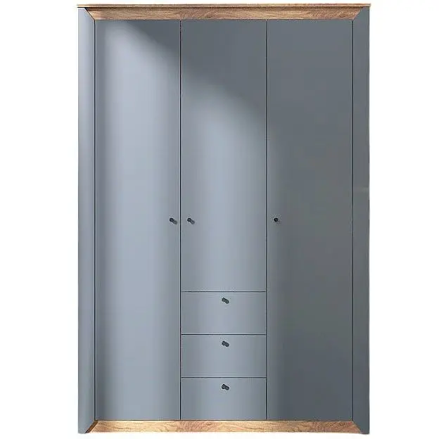 Особенности и преимущества шкафа включают три выдвижных ящика, которые функционируют на телескопических направляющих, обеспечивая легкое открывание и закрывание. Трехдверный дизайн предоставляет достаточно места для размещения вашей одежды, обуви и аксессуаров. Функциональная организация внутреннего пространства позволяет аккуратно распределить ваши вещи, а штанга для вешалок обеспечивает удобное пространство для одежды на тремпелях.