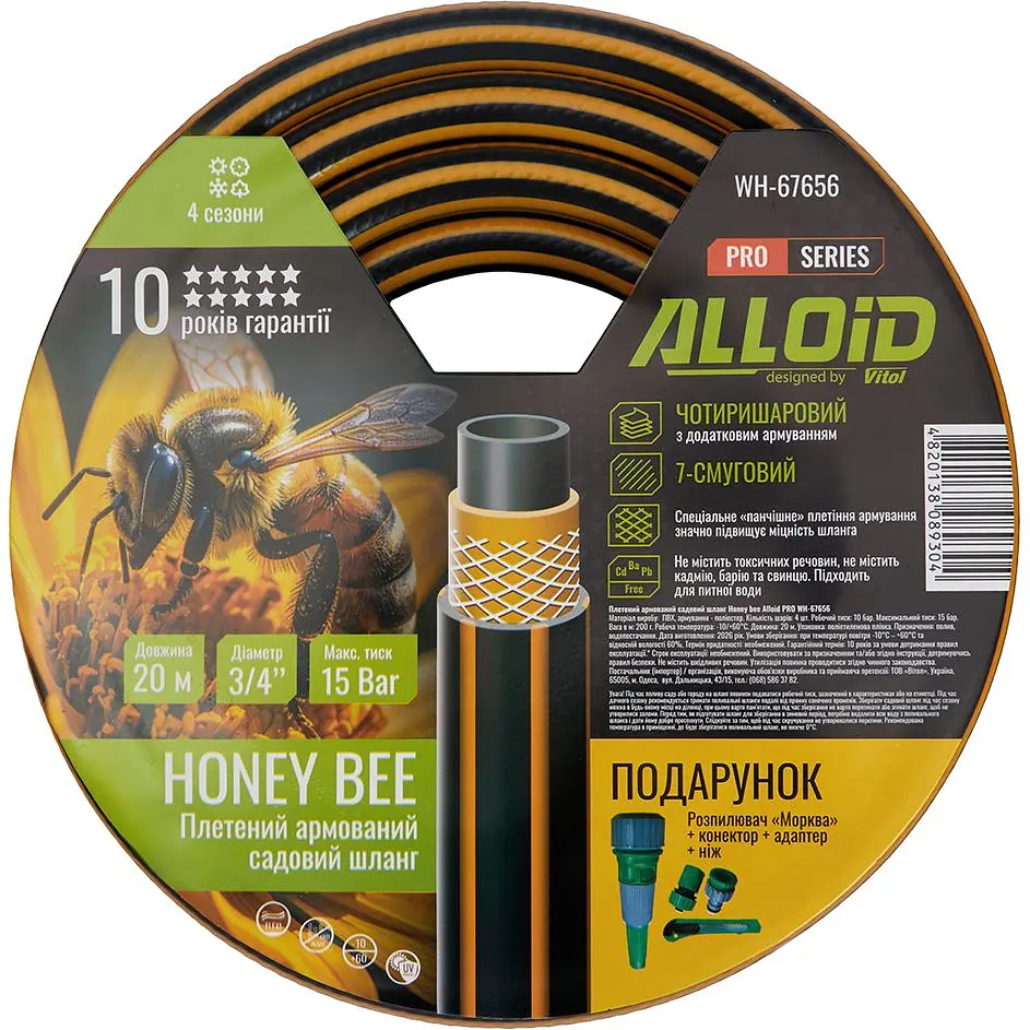 Шланг армированный 4-х слойный Alloid Building Tools Honey Bee - это прочный и долговечный инструмент для полива и хозяйственных работ, сочетающий в себе высокую износостойкость, удобство в использовании и стабильную подачу воды. Благодаря четырехслойной армированной конструкции шланг устойчив к изломам, скручиванию и воздействию высокого давления, что делает его идеальным выбором для больших садовых и приусадебных участков, а также для интенсивной эксплуатации. Дополнительным преимуществом является подарок в комплекте, который повышает выгодность покупки.
