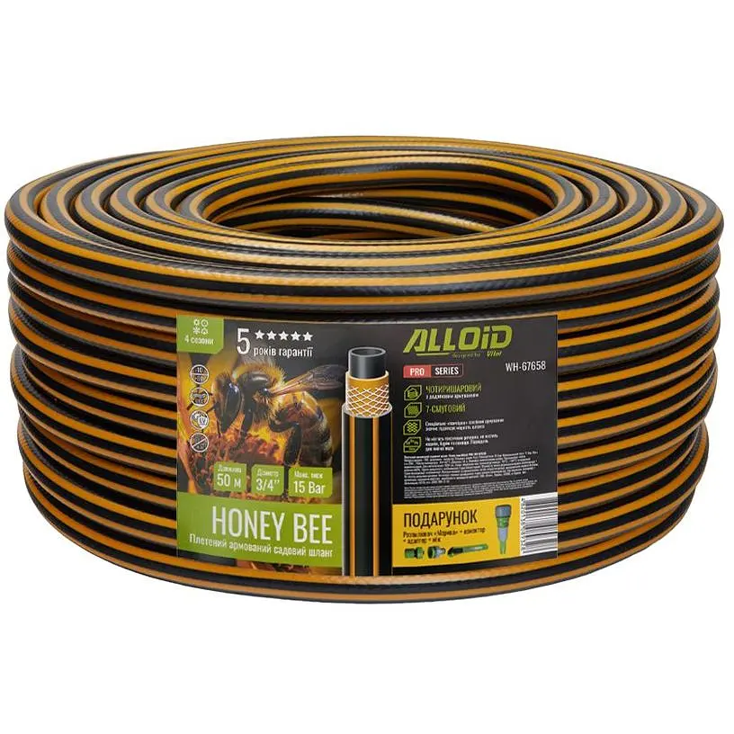 Шланг армированный 4-х слойный Alloid Building Tools Honey Bee - это прочный и долговечный инструмент для полива и хозяйственных работ, сочетающий в себе высокую износостойкость, удобство в использовании и стабильную подачу воды. Благодаря четырехслойной армированной конструкции шланг устойчив к изломам, скручиванию и воздействию высокого давления, что делает его идеальным выбором для больших садовых и приусадебных участков, а также для интенсивной эксплуатации. Дополнительным преимуществом является подарок в комплекте, который повышает выгодность покупки.