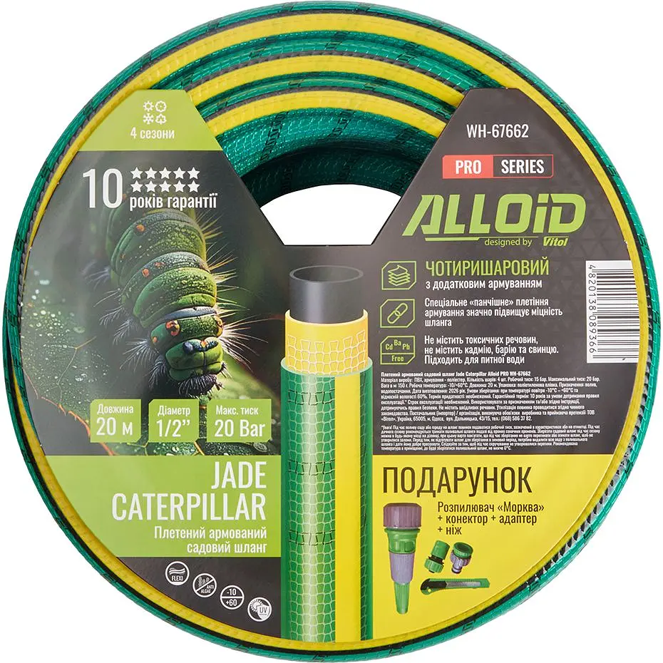 Шланг армированный 4-х слойный Alloid Building Tools Jade Caterpillar - это прочный и надежный инструмент для полива и хозяйственных работ, сочетающий в себе высокую износостойкость, удобство в использовании и стабильную подачу воды. Благодаря четырехслойной армированной конструкции шланг устойчив к изломам, скручиванию и воздействию высокого давления, что делает его идеальным выбором для сада, огорода, газона или приусадебного участка. Дополнительным преимуществом является подарок в комплекте, который повышает выгодность покупки.