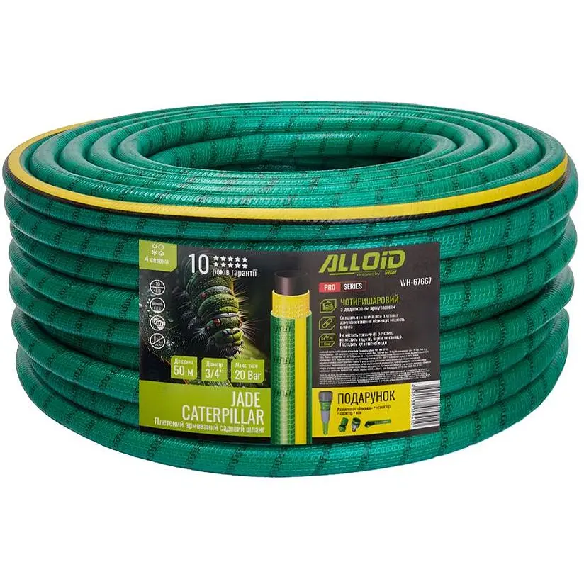Шланг армированный 4-х слойный Alloid Building Tools Jade Caterpillar - это прочный и надежный инструмент для полива и хозяйственных работ, сочетающий в себе высокую износостойкость, удобство в использовании и стабильную подачу воды. Благодаря четырехслойной армированной конструкции шланг устойчив к изломам, скручиванию и воздействию высокого давления, что делает его идеальным выбором для сада, огорода, газона или приусадебного участка. Дополнительным преимуществом является подарок в комплекте, который повышает выгодность покупки.
