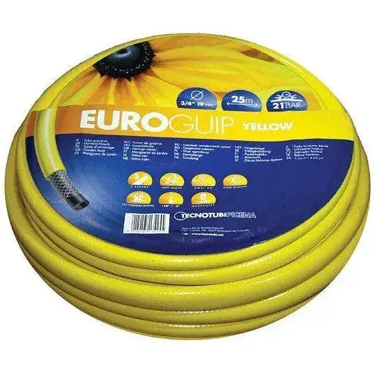 Шланг садовый Tecnotubi Euro Guip Yellow (EGY 5/8 50) диаметром 16 мм (5/8") длиной 50 метров изготовлен из высококачественного поливинилхлорида, устойчивого к воздействию воды и водорастворимых удобрений. волокна, которая делает шланг устойчивым к влиянию давления до 8 атмосфер и устойчивым к разрыву сада, мойке дорожек, автомобилей, мотоциклов, велосипедов.