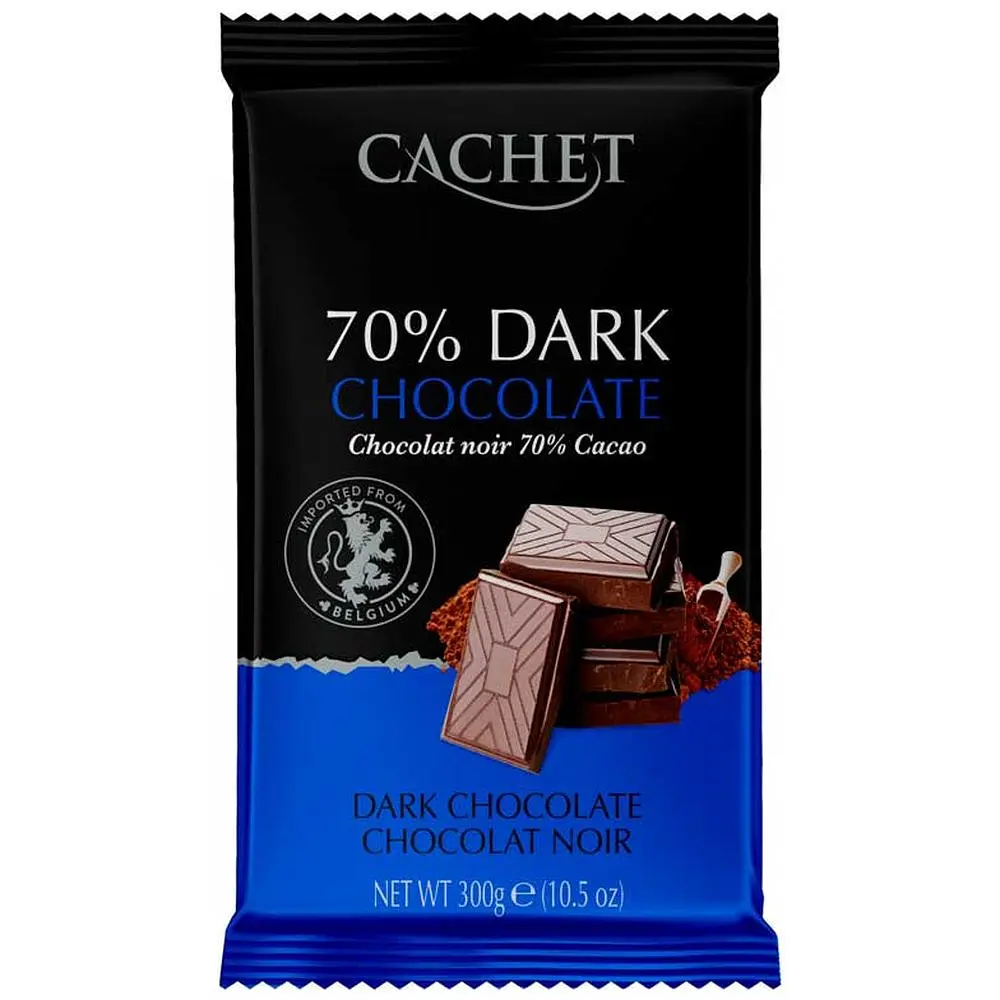 Шоколад Cachet - классический бельгийский черный шоколад с насыщенным вкусом и содержанием какао не менее 70%.