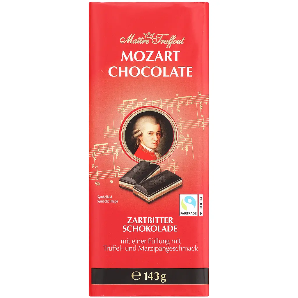 Шоколад черный Maitre Truffout Моцарт - это изысканный темный шоколад, сочетающий насыщенный вкус шоколада с нежной трюфельной и марципановой начинкой. Такой шоколад создает приятный и благородный вкусовой опыт, делая его идеальным выбором для любителей марципана. Шоколад является частью серии "Моцарт", которая славится своим качеством и идеально сбалансированными сладостями.