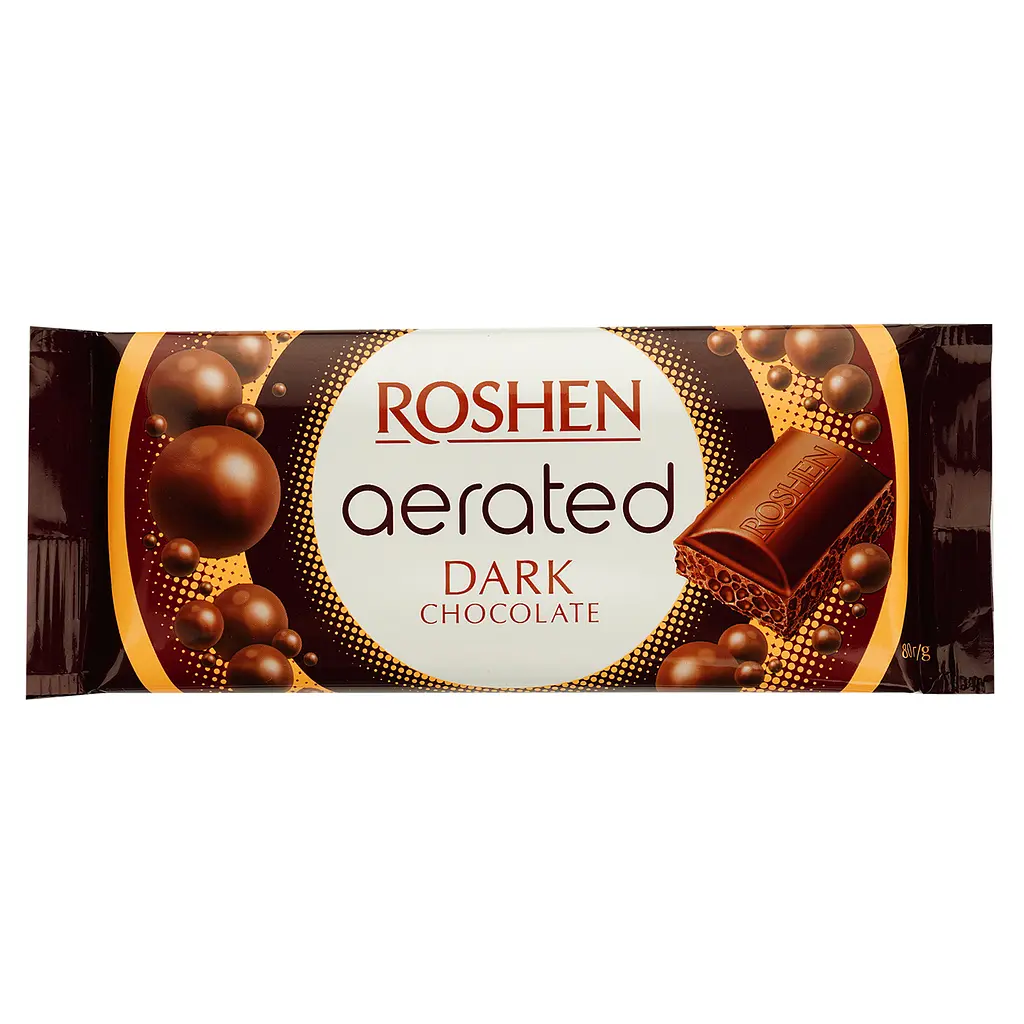 Экстрачерный шоколад Roshen Dark Bubble изготовлен из какао-бобов премиального качества. В составе продукта 56% какао. Обладает воздушной, ячеистой структурой, приятным свойственным вкусом шоколада превосходного качества, который медленно тает во рту и сохраняет приятное шоколадное послевкусие.