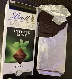 Шоколад смачний, смак м'яти без перебору, відчувається не хімозним, за що вже дякую. Брала, бо люблю цукерки від Lindt, і очікувала більшого. Вміст какао 47%, а за смаком чорний шоколад 56% від Рошен мені смачніший. Якщо брати до уваги ціну, то краще Рошен, але і ця шоколадка сподобалась.