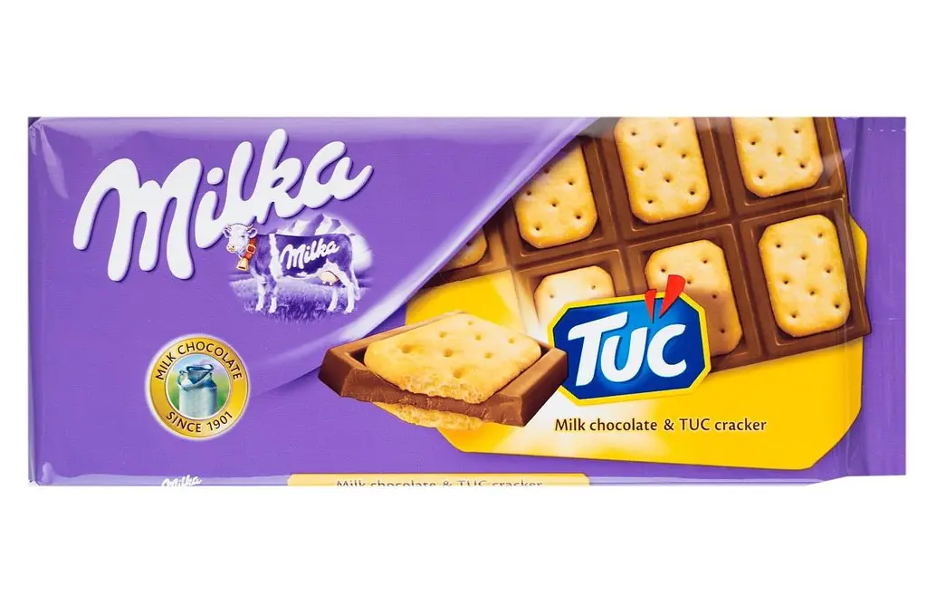 Шоколад молочный Milka с соленым крекером Tuc позволит поменять ваше представление о том, каким бывает шоколад. Встречайте оригинальную комбинацию: молочный шоколад и соленый крекер. Вместе они нежно дополняют друг друга, наслаждайтесь ярким вкусом, где бы вы ни находились. Бесподобный вкус способен перенести в волшебную страну, где всегда бездонное голубое небо, яркое солнце, чистые ручьи, зеленая трава и сиреневые мечты.