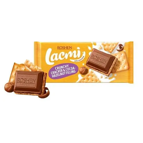 Шоколад молочный Roshen Lacmi с крекером и шоколадно-ореховой начинкой - богатый источник магния, минерала, необходимого для здоровья мозга. Шоколад учат ученые, любят взрослые и любят дети.