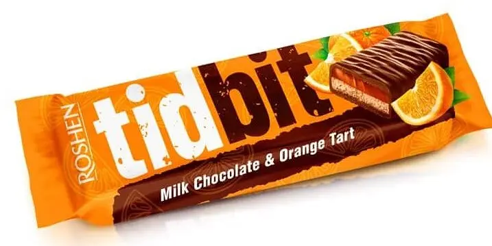 Шоколад молочный Roshen Tid Bit с начинкой бисквит-желе с апельсиновым вкусом. Новинка имеет три слоя удовольствия - мягкий шифоновый бисквит, фруктовое желе и толстый слой молочного шоколада Roshen. Сладкий шоколад с освежающей желе кислинкой и нежным бисквитом создают незабываемую композицию вкуса.