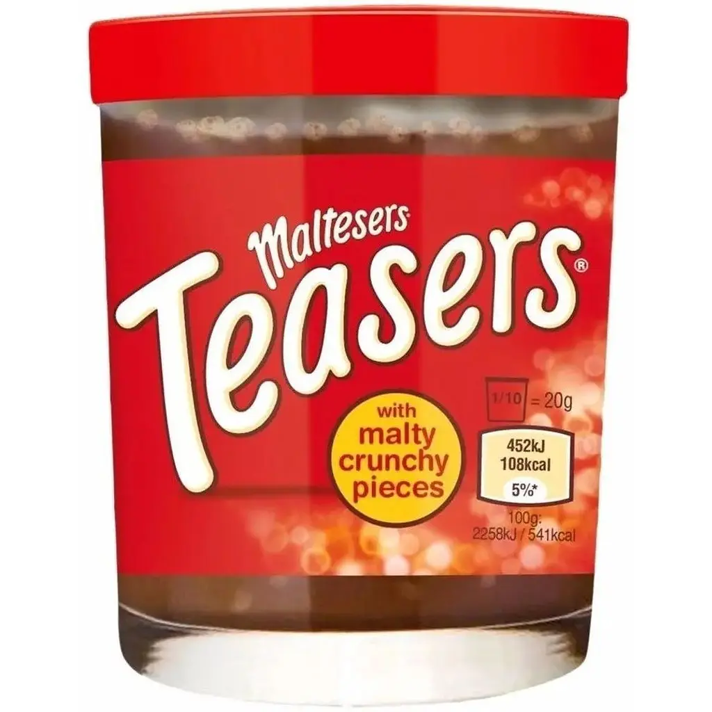 Шоколадная паста Malteser Teasers имеет мягкую текстуру и нежный шоколадный вкус. Создана на основе нежного шоколадного крема с добавлением измельченного хрустящего печенья.