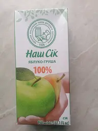 Сок Наш Сік Яблочно-грушевый - это натуральный сок, изготовленный преимущественно из украинских фруктов. В производстве соков этой торговой марки используется многоуровневый контроль качества, начиная с этапа отбора свежего сырья. В этих соках максимально сохраняется польза и вкус свежих фруктов.