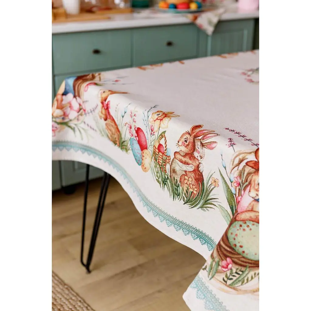Скатерть на стол торговой марки Прованс изготовлена из качественной испанской ткани. Состав ткани: 55% хлопок, 45% полиэстер (гобелен). Это стильный подарок семье, друзьям, родственникам и коллегам в честь светлого праздника Пасхи.