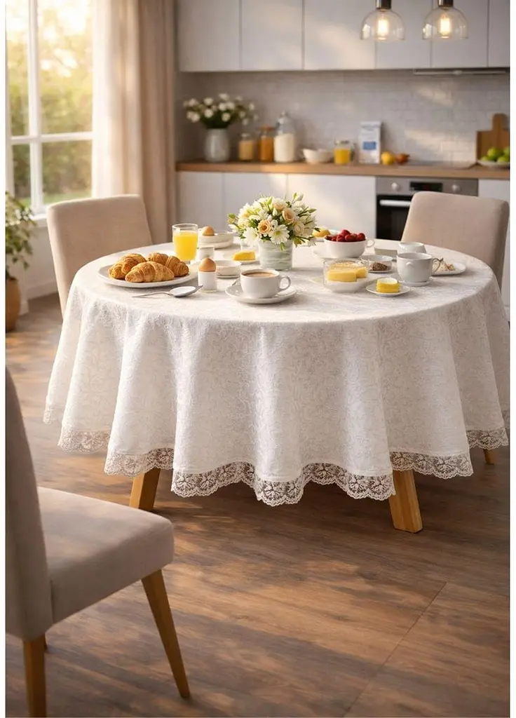 Современная скатерть из полиэстера турецкого производства — идеальный выбор для кухни, столовой или праздничного стола. Изготовленная из качественной ткани, она сочетает в себе практичность, долговечность и эстетичный вид.