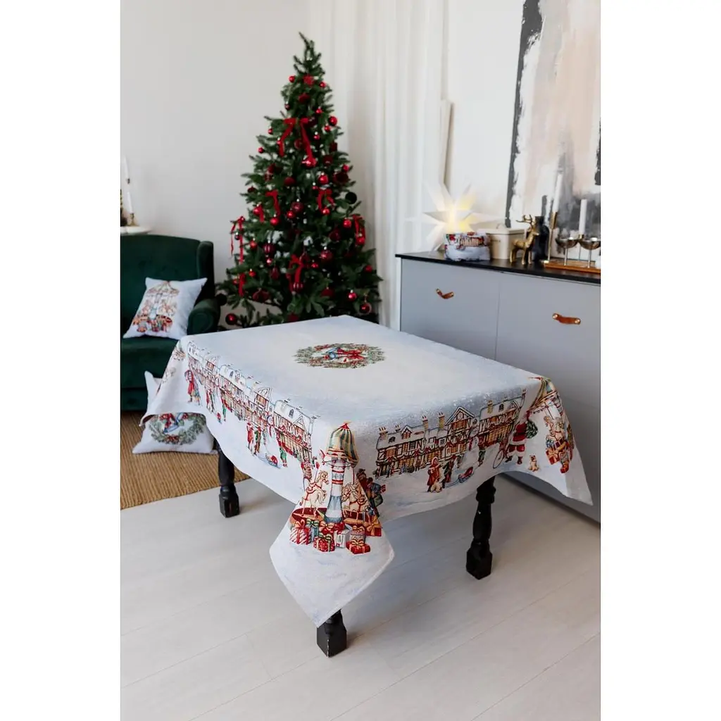 Скатерть гобеленова Прованс отлично подойдет для создания праздничной атмосферы и стилизации обеденного стола во время новогодних и рождественских праздников.