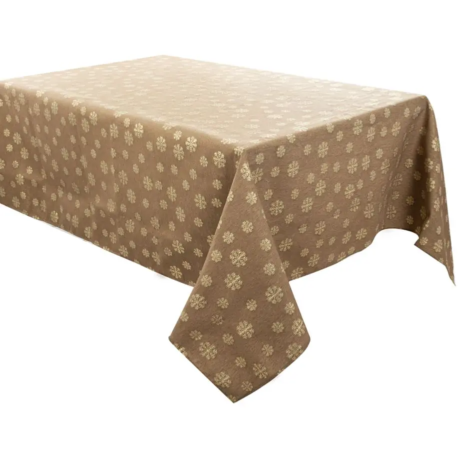 Скатерть изготовлена из качественной натуральной ткани, которая на 90% состоит из хлопка, а 10% - полиэстер и тефлон. Такой состав делает скатерть водоотталкивающей и позволяет защитить стол от пятен и разливов.