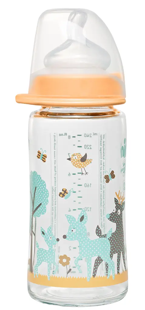 Стеклянная бутылочка Nip (Нип) Олени обеспечивает легкий и комфортный прием пищи.