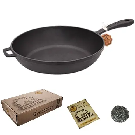 Железо с содержанием углерода более 2.14%. Если меньше, то сталь. Железо в чистом виде! В нашем случае без какого-либо покрытия (без эмали). Потому может ржаветь, если оставлять мокрой! Трудно! Не путать со старой бабушкиной чугунной сковородкой из литого алюминия. Покрытие на чугунной посуде образуется в процессе прокаливания (если новая). А в процессе приготовления оно постоянно обновляется. Но это не антипригарное покрытие, как почему-то думают (потому что черное), а самая тонкая полимерная пленка из запеченного масла (жира), которая защищает ваши сосуды от коррозии, а также обладает гидрофобными свойствами (отталкивает воду). И потому, чтобы не прилипало, готовить нужно с растительным маслом. Разве что лепешки можно без масла печь. И да. На чугуне можно печь. Потому что он кроме всего прочего имеет высокую тепловую эмиссию. Это чуть ли не главное преимущество чугуна. Способность отдавать тепло. Тепло от хорошо прогретой сковороды вы почувствуете в полуметре! Подобного эффекта вам от других материалов не получить. Тепловая эмиссия у чугуна в 10 раз выше, чем у алюминия. Это означает, что продукт готовится не только в месте касания поверхности, но и практически полностью.