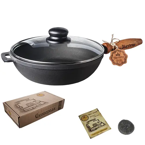 Наша мастерская изготовлена из литого чугуна. Оснащена двумя литыми ручками-ушками для прихваток и подвешивания. Глубокая чугунная сковорода удобна для жарки и тушения. Можно использовать на плите и в духовке. Чугунный корпус равномерно нагревается, выдерживает высокие температуры. комплекте жаропрочная стеклянная крышка. Жаровня упакована в фирменную картонную коробку и станет хорошим подарком.